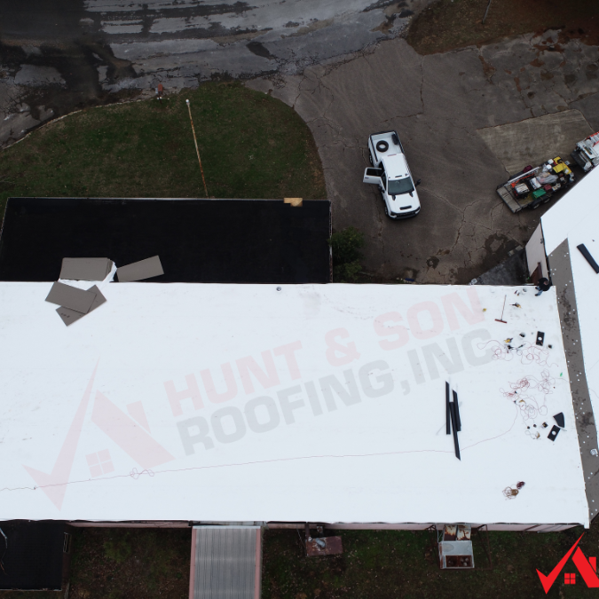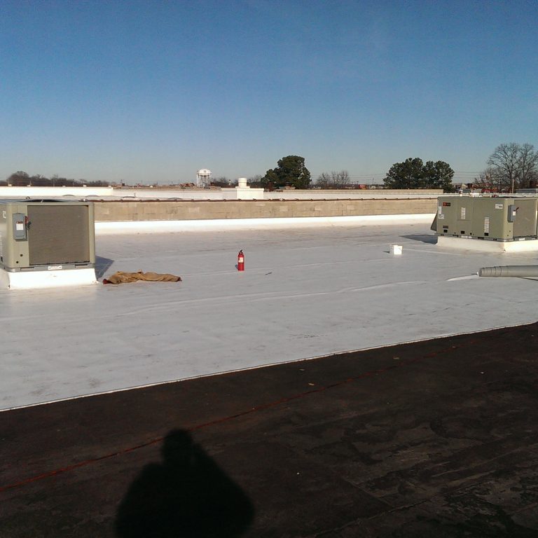 Using the TPO system and state of the art equipment, this single ply system is heat welded by machine for consistency and less human error. The project is over 100K sqft of warehousing that demands dry conditions.