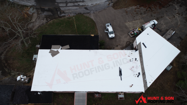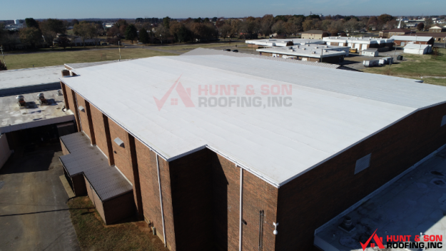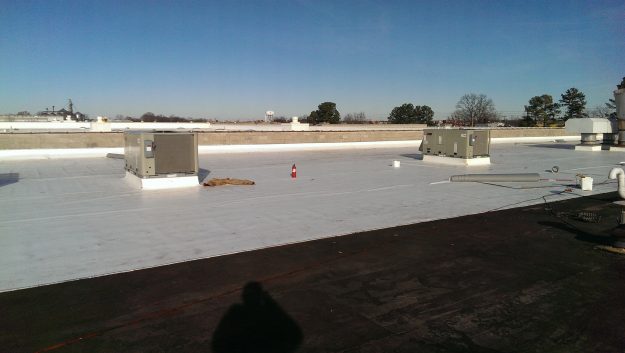 Using the TPO system and state of the art equipment, this single ply system is heat welded by machine for consistency and less human error. The project is over 100K sqft of warehousing that demands dry conditions.